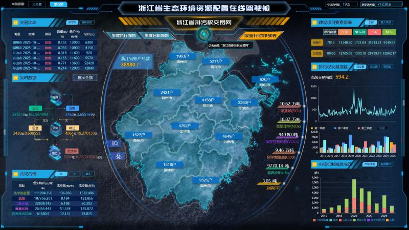 为贯彻落实国家关于资源环境要素市场化配置改革、美丽中国建设、数字政府建设等要求,针对如何更好实现排污权市场化交易、优化资源配置效率,提升公平竞争营商环境,经过数年努力,2023年浙江省生态环境低碳发展中心研发全国首个基于“互联网+AI国产化适配”的排污权市场化配置数字化平台科技成果,取得浙江省排污权交易平台V1.0(软著登字第14286760号)、浙江省生态环境资源配置在线平台V1.0(软著登字第11006142号)、新增排污权总量监控系统(软著登字第10474163号)、浙江省排污权交易指数系统V1.0(软著登字第9834370号)、长三角排污权交易大厅系统V1.0(软著登字第14343929号)5项计算机软件著作权等知识产权。