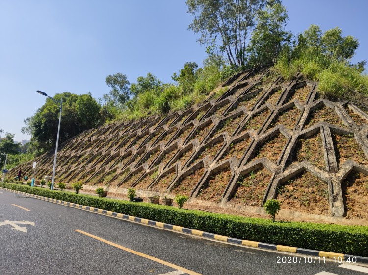 针对因自然灾害、城市基础建设等造成的边坡裸露、生态系统受损和生态景观受破坏等问题,2019年深圳城市职业学院科研团队研发了格构梁边坡稳定性及其生态景观构建等科技成果,取得了采用匍匐性植物和阳性先锋植物组合的边坡植被恢复方法(ZL202110430959.9)等知识产权。