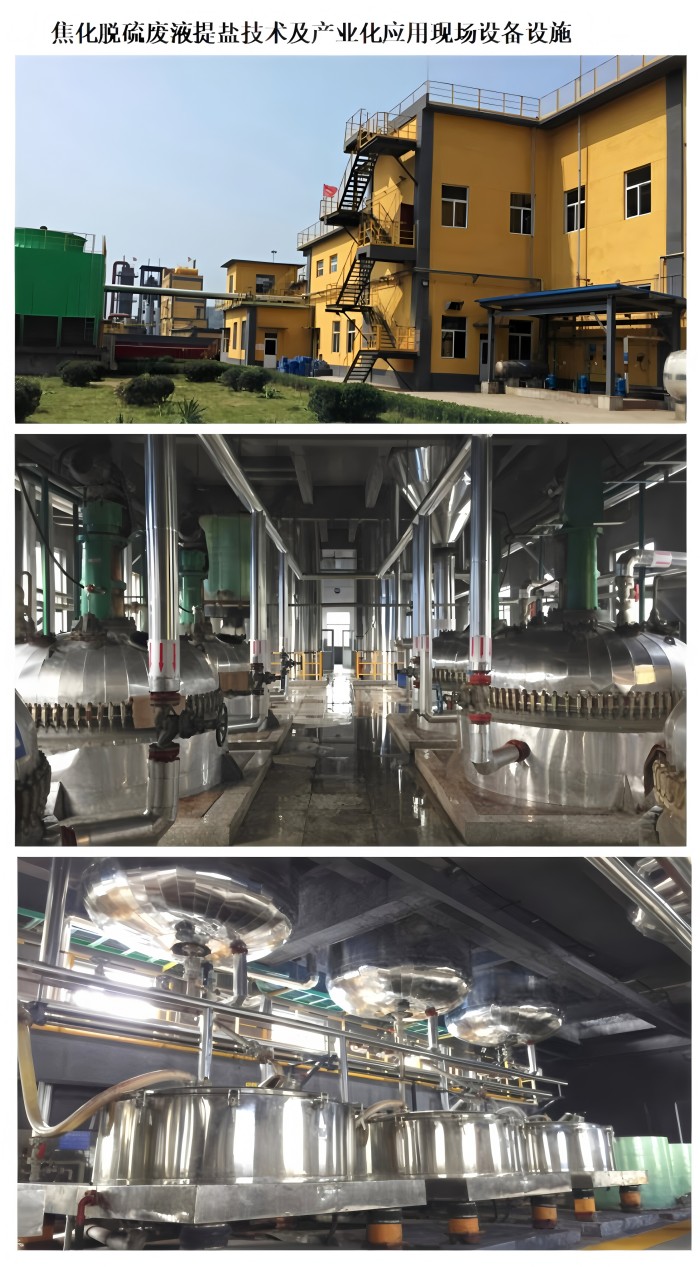 2008年我司开始组建科研团队着手焦化厂脱硫废液提盐技术的开发,通过从脱硫废液中提取硫氰酸铵、硫酸铵两种有价值的工业盐(脱硫废液中主要含硫氰酸铵、硫酸铵、硫代硫酸铵三种盐),实现焦化企业对脱硫废液的可再利用处理。历经6年时间,于2014年开始实现产业化应用,并取得了1项发明专利、4项实用新型专利。