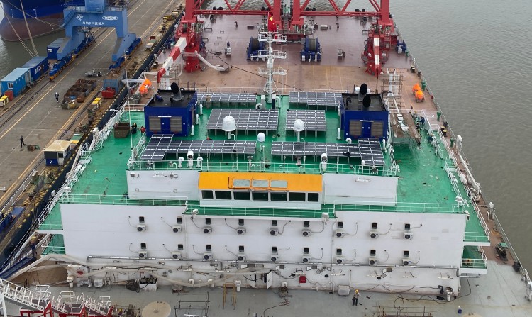 “二航卓越”起重船生活区顶部安装的光伏板