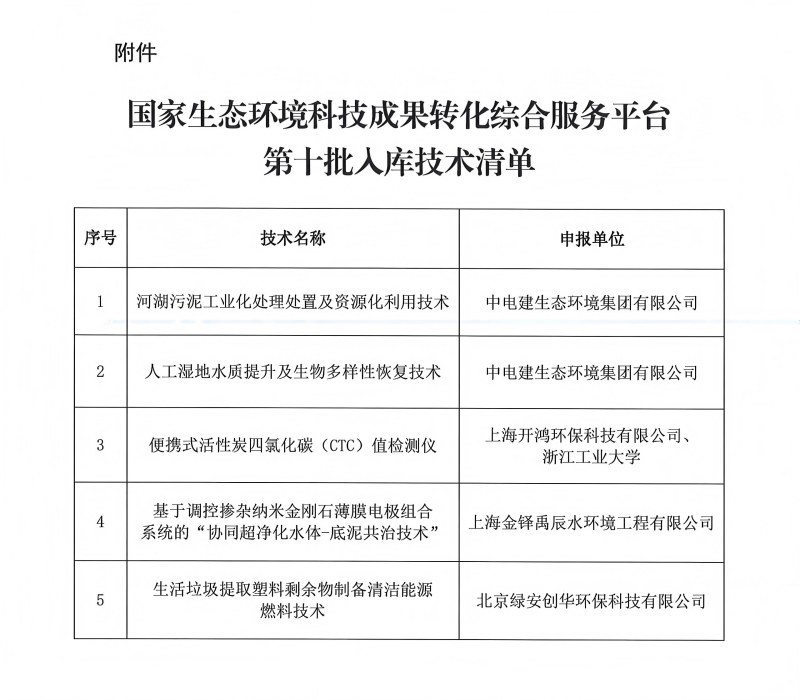 根据生态环境部《关于推进国家生态环境科技成果转化综合服务平台技术筛选入库的公告》(2021年第2号),经形式审核、技术评审及公示等程序,“河湖污泥工业化处理处置及资源化利用技术”等5项拟入库技术未收到任何异议,现正式纳入国家生态环境科技成果转化综合服务平台技术成果库予以发布。